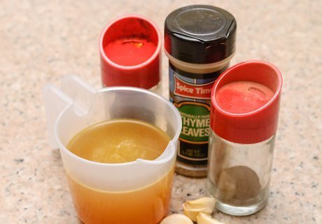 Gather spices and broth. Spices and broth are critical elements of your pot pie as they’ll add flavor and moisture to it. Without the proper spices and broth, your pot pie won’t taste right. You can use vegetable broth or chicken broth. If you use low-sodium broth, you’ll have to add more salt later. Consider garlic, sage, thyme, pepper, and parsley. Spices can be fresh or dried -- whatever you prefer.