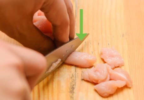 Cut your ingredients. The first step in preparing your pot pie will be to cut your ingredients to your desired size. Ultimately, your ingredients should be cut so that they will cook easily and be easy to eat. Cut your vegetables and chicken in quarter or half inch squares. Slice your onions and garlic, if you use them, in small pieces. Make sure to separate your ingredients into different bowls.