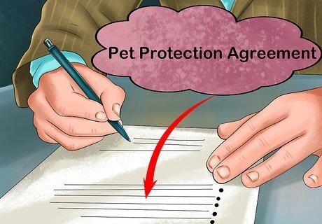 Draft your own pet protection agreement. If you don’t want to pay the fee, then you can draft your own pet protection agreement. Make sure that it includes the following information: Your identifying information (name and address). The guardian and any alternate guardian who will take care of your cat. Also name an organization that will take your cat if none of your guardians can care for your pet. Name and details about your cat (gender, eye color, coat color, etc.) Instructions for taking care of your cat. The funds you are leaving to take care of your cat. Identify the source, such as life insurance policy number. Name of your distribution representative and any alternates. Amount of compensation paid to the cat’s guardian and your distribution representative. Names of successor beneficiaries to receive left-over funds.