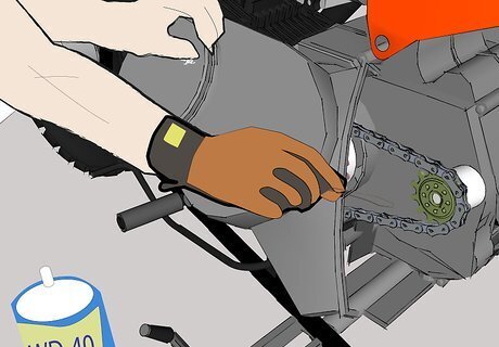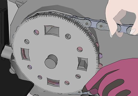 Take the new chain and put it around the two sprockets so the end and the middle of the chain are touching on the back sprocket.