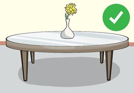 Remove pointy corners. Kids have a tendency to run into sharp things, and coffee tables are particularly notorious for this problem. Consider choosing round or oval coffee tables or one with rounded corners. You could also choose a sturdy padded footstool instead. You can also buy special guards for sharp corners if you don't want to change out your furniture.