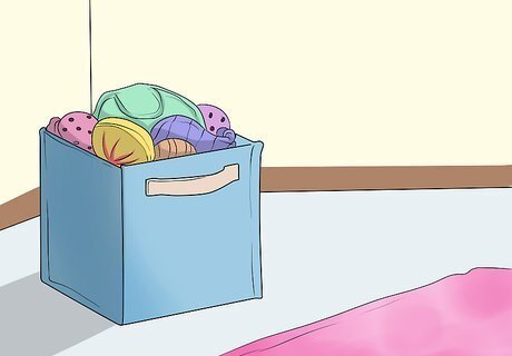 Store kid stuff low to the ground. Kids want to be able to get to their stuff, so try storing it near their level. Bonus, if it's on their level, they're more likely to put it back afterwards than if it goes back somewhere they can't reach. Plus, they don't have to ask you every time they want to play with something.