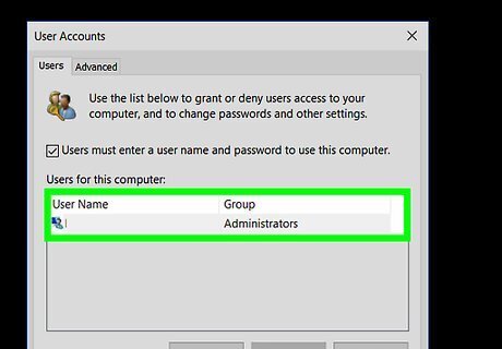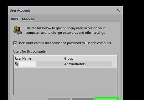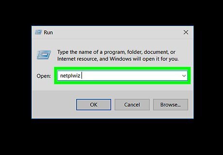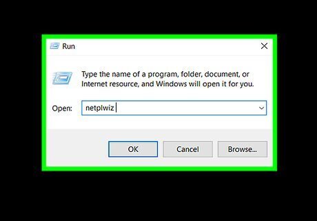 Type in netplwiz and press ↵ Enter. This will open the User Accounts window. If you typed this into Start, click netplwiz at the top of the Start window instead.