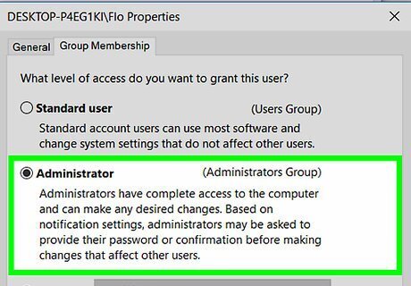 Open Start Windows Start. Click the Windows logo in the bottom-left corner of the screen. In order for this method to work, you must currently be logged into an account with Administrator privileges. If you're attempting to give another account on this computer administrator privileges, skip to the third part.