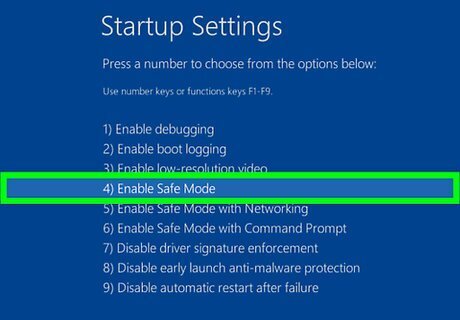Press 4. Doing so selects "Safe Mode" as your restart option and restarts your computer into Safe Mode. This process can take several minutes.