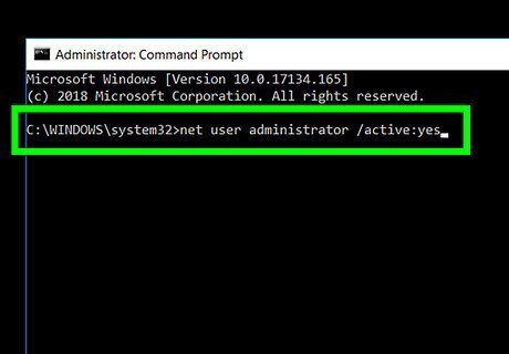 Enable the hidden administrator account. Type:net user administrator /active:yes into Command Prompt, then press ↵ Enter. From now on this computer, you'll have the option of opening the Administrator account at any time by using Safe Mode.