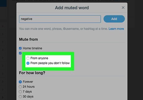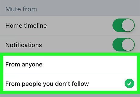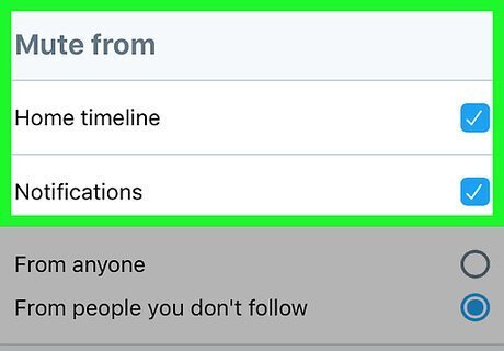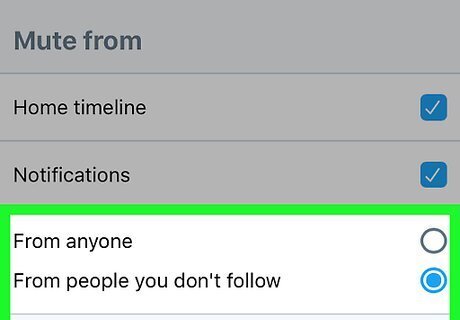 Pick the people you want to include in the filter. You can decide whether you want to mute words From anyone or From people you don’t follow (for notifications you have set up).