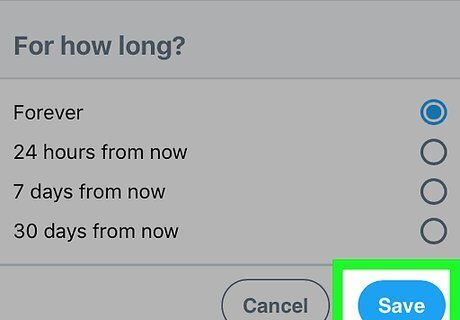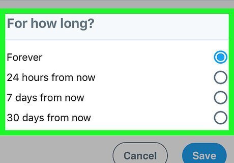 Select how long you'd like to mute the word for. Pick between Forever, 24 hours, 7 days, or 30 days.