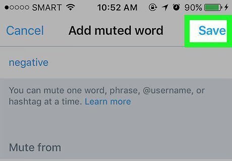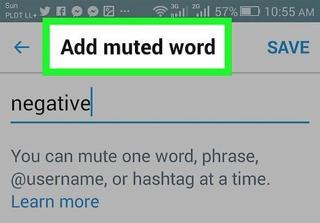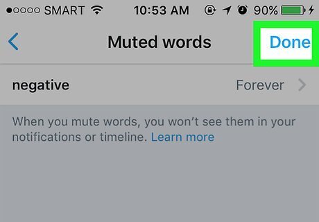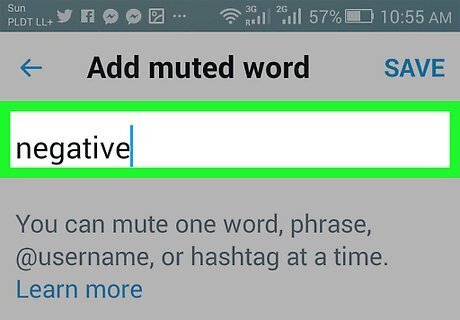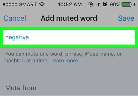Type in the term you want muted. Add any separate words one at a time, rather than all together.