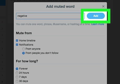 Pick whether you want to mute the word on your Home timeline or Notifications, or both.