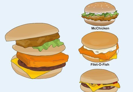 Order the Land Sea and Air Burger. This burger incorporates the unique flavours of the fish fillet, beef patty, and chicken patty, hence its name. The land is the cow, the sea is the fish, and the sky is the chicken. Order this crazy burger by asking for a cheeseburger, Filet-O-Fish, and McChicken, and assemble it by placing the McChicken at the bottom, placing the fish fillet on top of the McChicken, and placing the cheeseburger patty and bun on top.