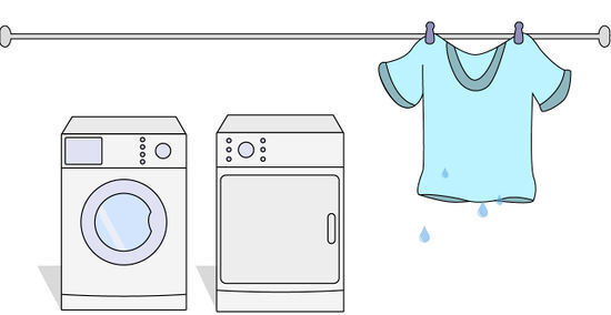 Hang a rod to dry wet clothes. Try hanging a shower curtain rod in the laundry room. A rod will provide a space for hanging wet or damp clothing. Try positioning a shower curtain rod above the washing machine, and use it for hanging up clothes that need to air dry.