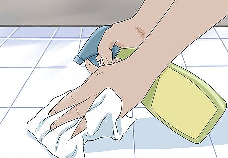 Soak a cloth in an abrasive bathroom cleaner and wipe the tile again. Abrasive bathroom cleaners remove the stains and dirt that have become embedded into the surface of the tile. The abrasive bathroom cleaner will remove any mildew, dirt, or soap scum from the tile.