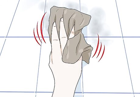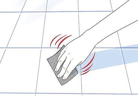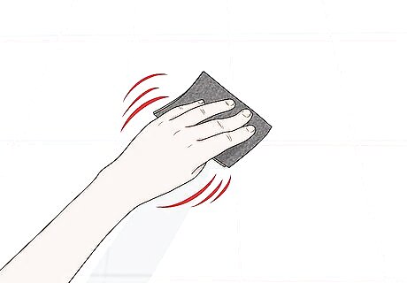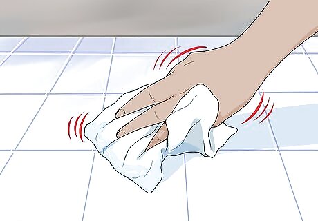Clean the surface with a damp cloth. After sanding, remove any leftover sand dust by wiping the surface of the tile with a damp cloth. Gently rub the surface with the cloth to remove the sand dust. Give the tile an hour or two to dry after wiping it with the damp cloth. You can wipe the tiles dry with a dry cloth or paper towels so you don't have to wait before moving on.