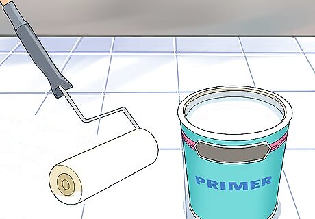 Prime the tiles you want to paint. Read the instructions on the tin of the primer before applying it. Use a roller to apply the primer evenly to the surface of the tiles. You can use a paintbrush if you don't have a roller. Give the primer 4 hours to dry after applying it to your tiles.