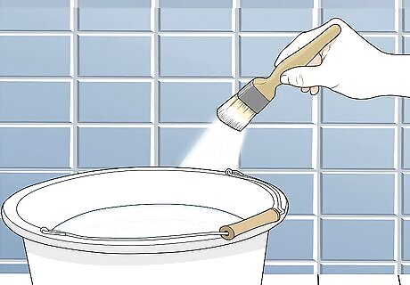 Protect the surrounding area. Before you start painting your tile, cover the other areas and surfaces of your bathroom. Cover the surface of the bath or shower with a large plastic sheet. Use painter's tape to keep the sheet in place. Cover the adjacent tiles with painter's tape if you're painting a specific design.