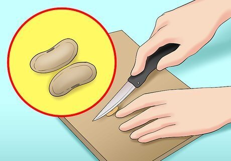 Split the bean in half. There is a line that runs down the middle of most beans. Use this line to guide the bean open. The bean should be evenly split. Use a knife if you need to cut the bean in half along this line. An adult should cut or supervise the cutting of any beans.