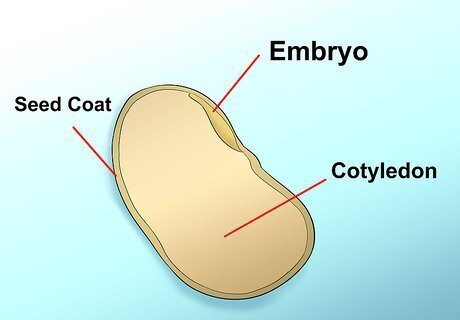 Identify the parts of the bean seed. You will find the embryo, cotyledon, and the seed coat. Label each of these structures on a diagram. If you don’t have a diagram, sketch the structures out in your notebook.