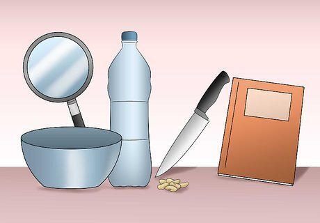 Gather your lab materials. You will need a bowl, water, dried beans, a knife, a journal, and a magnifying glass. You can use any large bean such as a kidney or lima bean. You may also consider having a worksheet or print out of the bean’s structures. Use different kinds of beans to compare the seed structure across multiple varieties.