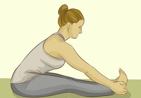 Stretch before getting up on the hammock. Since your body may not be used to the motions and pressures entailed in aerial yoga, it’s particularly important that you warm up your muscles before beginning your workout. Get limber and ready by stretching out all the main muscle groups—including your legs, arms, and core—for at least 15 to 20 minutes. Pay special attention to your shoulders, hands, and arms, as these are put under particular strain during an aerial yoga workout.