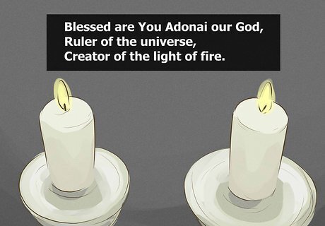 Recite the prayer over the candle/light. You can extend your hands towards the flame to feel its heat and appreciate its beauty while praying: ברוך אתה יי אלהינו מלך העולם בורא מאורי האש You can speak this transliteration: Baruch ata Adonai eloheynu melech ha’olam Borei m’orei ha-eish. The prayer translates as: Blessed are You Adonai our God, Ruler of the universe, Creator of the light of fire.