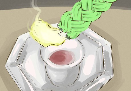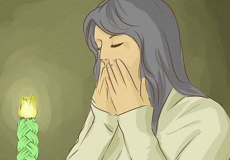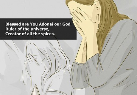 Pick up and pass around the key items. While it is traditional to hold up the wine, spices, and candle at various times during the Havdalah service, the fine details tend to vary. Here is one version to consider following (it assumes a right-handed person; reverse the hand directions if you are a lefty): Pick up the wine in your right hand; pray; move the wine to your left hand and continue to hold it. Pick up the spices in your right hand; pray; smell the spices and pass them around for others to do the same. Bless the candle while another holds it or, if alone, while it rests in a holder. During the blessing, all present can extend their hands toward the candle so that their fingernails reflect its light. Move the wine back to your right hand for the final blessing.