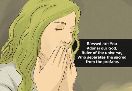 Recite the concluding prayer. This blessing both closes the ceremony and points toward the new week that has just begun: ברוך אתה יי אלהינו מלך העולם המבדיל בין קדש לחול In transliteration, it is: Baruch ata Adonai eloheynu melech ha’olam Hamavdil bein kodesh l’chol. In translation, the prayer is: Blessed are You Adonai our God, Ruler of the universe, Who separates the sacred from the profane.