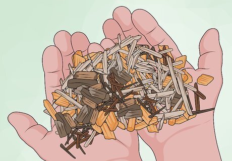 Use twigs and small branches to save money. If you live in a rural area and there are a few fallen trees around, you could gather some twigs and small branches. Chop them up and add them to your garden for a cost-effective option. It will cost you some hard work but is otherwise free. Twigs and branches tend to have more nutrients than bark and wood chips, so they may be better for improving soil quality.