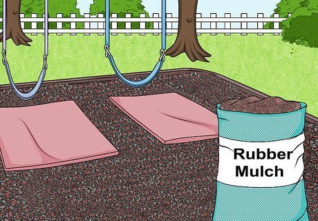 Choose rubber mulch for playgrounds. If you need to cover your backyard playground area, rubber mulch offers the advantage of softening falls. It is typically made from recycled tires. The disadvantage is that it may smell a bit on hot summer days and could get tracked into the house. Choose a reputable manufacturer to avoid overly smelly or even toxic products.
