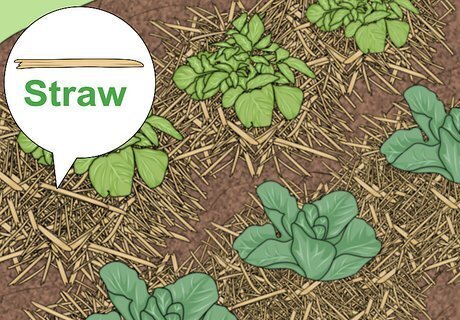 Choose straw. Straw is a nice choice for mulching because it adds contrast to your garden. It is also easy to spread around small plants, since it has a fine texture in comparison to wood chips. It is a good choice for organic gardening. However, you should keep in mind that it needs to be replaced more frequently than wood chips or bark mulches. You should avoid using hay, which is similar to straw but contains seeds which may just produce more weeds. You should avoid hay from areas where roundup is being used, especially if you have an organic garden. You don’t want to get pesticides into your garden inadvertently. You should avoid hay from ryegrass because it has toxins that can harm your plants.
