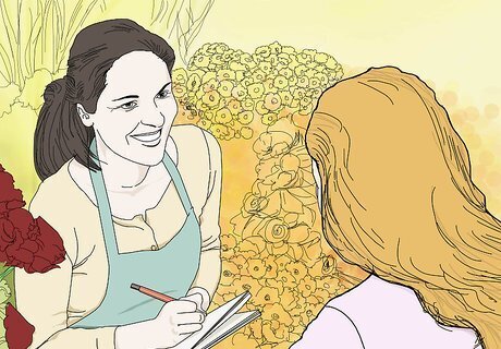 Keep your options open regarding flowers. Flowers can be tricky for a Christmas wedding, as many flowers are out of season during the winter months. If you have your heart set on a particular type of flower, you may end up having to pay a very high price. Therefore, be flexible regarding flower choices. Have a long list of acceptable flowers on hand before visiting a florist. You may have to go with your second, third, or even fourth choice depending on the price and season. It may be a good idea to go in without specific flowers in mind. Talk to a florist about affordable, in-season options. With flowers, the more flexible you are the better for a Christmas wedding.