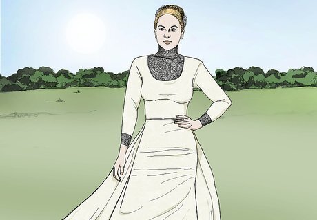 Figure out how to stay warm in a wedding dress. Even for an indoor ceremony, you may want to dress a little warmer. Drafts and breezes can get in from outside and you'll be outdoors going to and from the wedding. If you're marrying in a colder climate, find ways to stay warm in your wedding dress. A long-sleeved wedding dress can make more sense for a winter wedding. If you choose to wear a strapless dress, add a matching bridal winter coat. Wear tights under your dress if it's on the longer side. No one will notice and you will stay warm. Instead of flats or heels, consider wearing matching bridal boots on your wedding day.