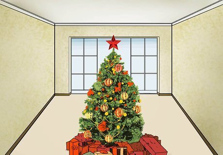 Think about including a Christmas tree. As your wedding is Christmas-themed, a big tree in the center of the reception area can really make things feel festive. Christmas trees can be purchased in a variety of places around the Christmas season and are simple to set up on your own time. A fun way to combine the season and your wedding is to choose wedding-themed decorations for the tree. You can, for example, garnish the tree in black and white ribbons. Give it a sentimental touch. Punch holes through various pictures of you and your spouse and then thread string through the holes. Hang these up on the tree for your big day.
