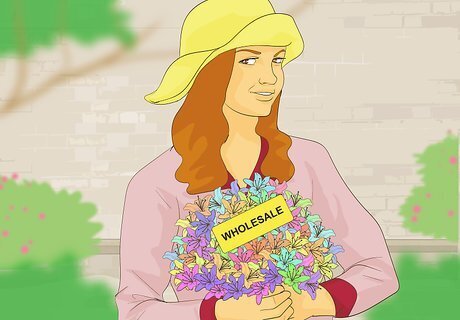 Purchase flowers wholesale. Instead of having a florist get all of the materials for your arrangements, you can purchase flowers at wholesale and provide them to the florist. This will reduce the cost that you need to spend on flowers. Negotiate and have a conversation with your florist about what a tight budget you are on. If you or someone you know has gardens with naturally growing flowers, see if you can use them instead of having to purchase them.