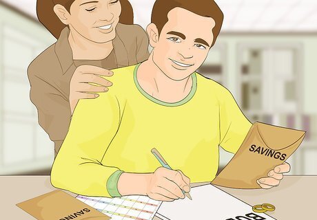 Keep the wedding small and simple. Instead of getting ornate and extravagant wedding materials, think small but refined. Keep an open mind and be willing to negotiate the quality of certain things to keep the price down. Speak to your partner and bounce ideas off them so that you stay realistic.