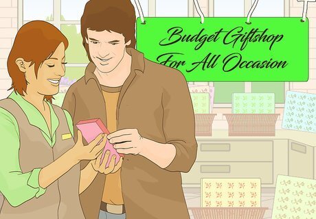 Skip the traditional gifts for your wedding party. Typically the bride and groom get gifts for people in the wedding party. If you're on a tight budget, consider skipping this tradition. You can also purchase cheaper gifts if you want to get something but don't want to spend a lot. Affordable gifts for bridesmaids include flowers, books, or cards. Cheap gifts for the groomsman include a flask, whiskey rocks, pocket knives, or luggage tags.
