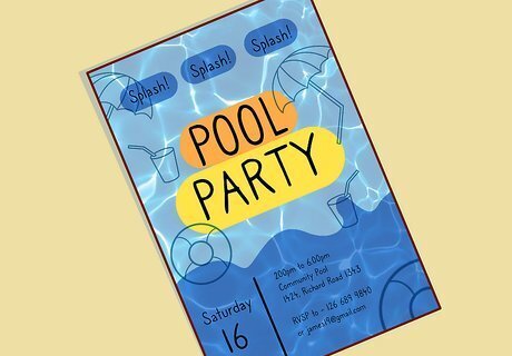 Decide on a date. Pool parties usually take place in the summer and are located outside, to enjoy the nice weather. When picking a date for your pool party you will want to consider the weather. You want a warm day, with no rain in the forecast. It is also best to host your pool party on the weekend, so more people are able to attend. In case you have to cancel due to poor weather, you may want to schedule a rain date. This is especially important if you live in a rainy area and are hosting outside. If you are planning your pool party to celebrate an event, such as a birthday, you may want to pick a date close to the event.