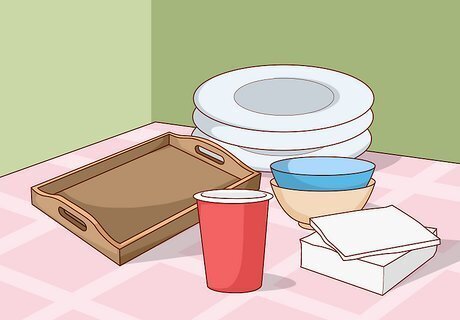 Organize supplies. When serving food or drinks at your party, you will need supplies such as, serving trays, bowls, cups, cutlery, plates, napkins, ice, coolers, etc. Make sure you have enough supplies for the number of guests that you are serving. Also, it is a good idea to serve food on paper or plastic plates, so you don’t have breakable dishes near the pool area.