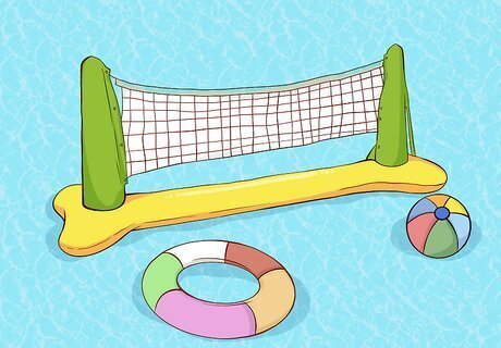 Consider games and activities for the party. Depending on the type of party and location, you may want to have some games, toys, or activities available to entertain your guests. Some games include: Marco polo, treasure hunt, sharks and minnows, octopus, volleyball, etc. You could also provide water toys, such as beach balls, pool noodles, floating devices, rings and retrieval objects, water balloons, squirt guns, etc.