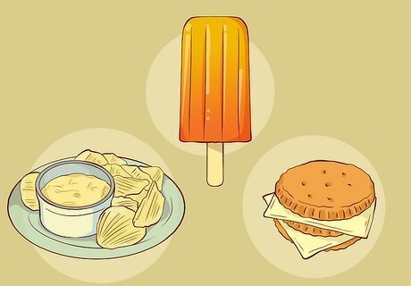 Decide on snacks and drinks. It is a good idea to provide some snacks and drinks at a pool party because guest will get hungry from swimming and playing in the water. Setting out light snacks and finger foods is easy and will keep party goers happy. You could serve some of the following snacks and drinks: A fruit and vegetable tray. Chips and dip or corn chips and salsa. Popsicles. Crackers and cheese. Water, lemonade, iced tea, pop, juice, punch, etc. Alcoholic beverages for adults.