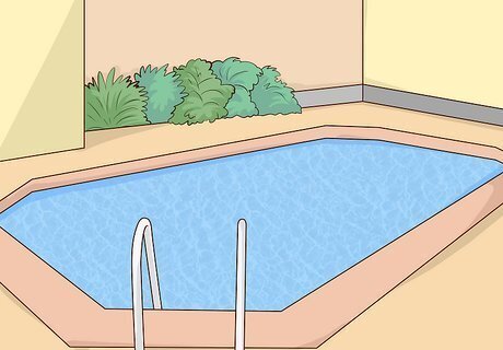 Find a pool. The most important component of a pool party is having a pool for you and your guests to use. There are a variety of options for finding a pool for your party. Using your own pool or a friend or family members' pool: If you have a pool, hosting at your own house is convenient and provides a private location for your party. Many communities have pools that are open for use by the public. There is often a small fee to use community pools, but they are very reasonably priced. Some hotels with pools and swim attractions will allow you to purchase day passes to use the facilities without staying at the hotel. There are indoor and outdoor options of both hotel pools and water parks.
