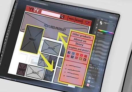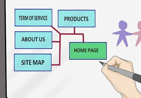 Create a site map diagram. A site map diagram is like a flow chart and shows how users move from one page to the next. You don't even need pages at this point, just a general flow of concepts. You can use a computer program to create a diagram, or sketch it out yourself on a piece of paper. Use the site map diagram to show how you envision the web page hierarchy and connectivity.