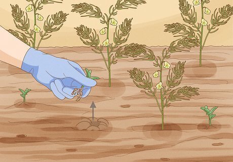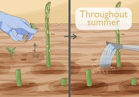 Weed the soil. Asparagus plants will die if they have to compete for nutrients with weeds, grasses, and any other plants. Take good care of the soil while the plants reach maturity. When they're older, their deep roots will naturally crowd out weeds.