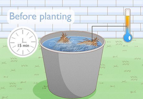 Soak the crowns. Place the crowns in a bucket of either warm water or a compost tea (fortified with plant nutrients) for about 15 minutes before planting.
