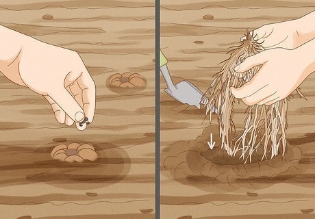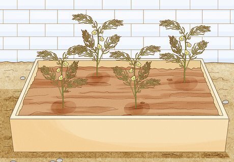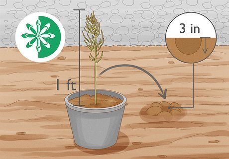 Plant the seedlings outside. When the seedlings are about a foot tall, and the weather outside has warmed to spring, it's time to plant them outside in a nursery bed. Dig a hole about 3 inches deep to allow them to continue growing.