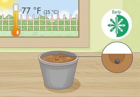 Start the seeds indoors. Early in the spring, sow single seeds in small pots meant for starting seedlings. Place the pots in full sunlight, moisten the soil daily, and keep them at a temperature of 77 °F (25 °C).