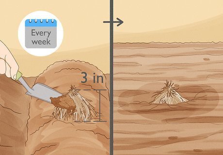 Mulch the plants. Spread 4 to 8 inches (10 to 20 cm) of mulch around the plants after the trench has been filled. Mulching the plants helps to keep weeds down and helps retain soil moisture.