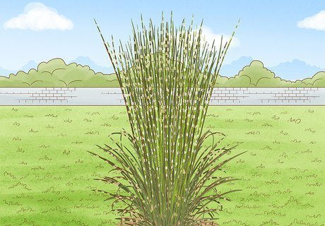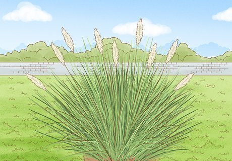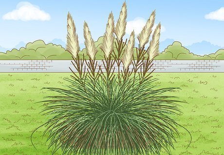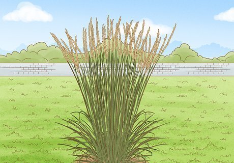Plant dwarf pampas grass if you want an ornate, flowering grass. Dwarf pampas grass develops white, feathery flower heads in the late summer and fall. It can withstand drought and grow in any soil type and temperature. Choose this grass if you want something that will survive winter and add visual interest to your garden during other seasons. Dwarf pampas grass can spread through your garden easily, so install plant barrier panels around it to keep it contained to the area you want it. This grass can grow up to 5 feet (1.5 m) tall.