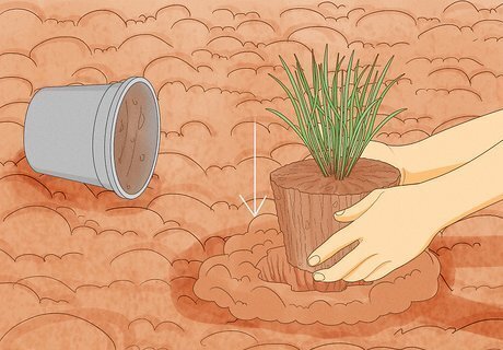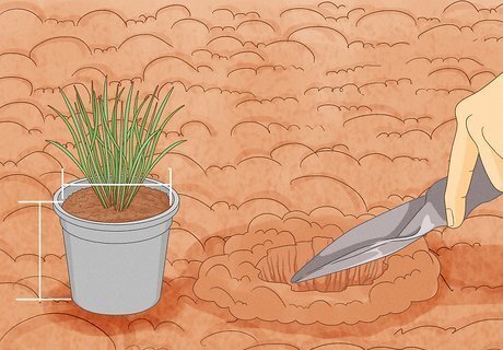 Dig holes that are the same depth as the plant containers. Use a garden trowel or shovel to dig the holes. If necessary, insert the pots into each hole to make sure they are big enough.