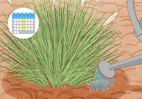 Water landscape grasses once a week during their first growth season. While landscape grasses are developing their root systems, they require regular watering. Water them at least once a week, or more as needed. Once your landscape grasses are fully grown, they will only require watering in the event of a drought period. The time your landscape grasses take to reach maturity will depend on the type of grass you plant.